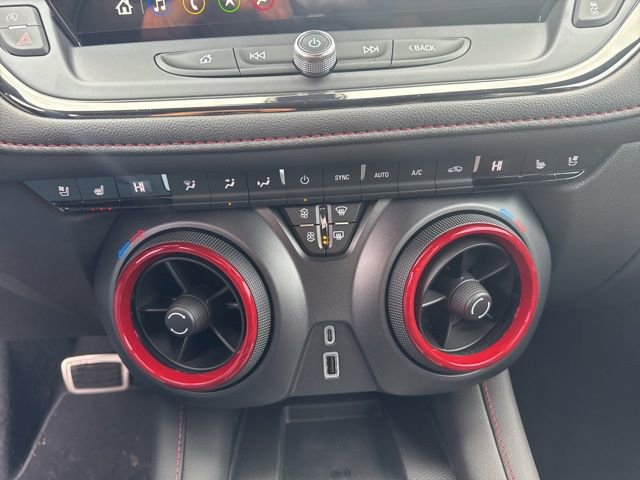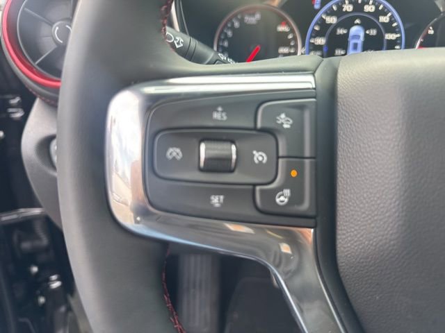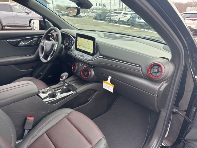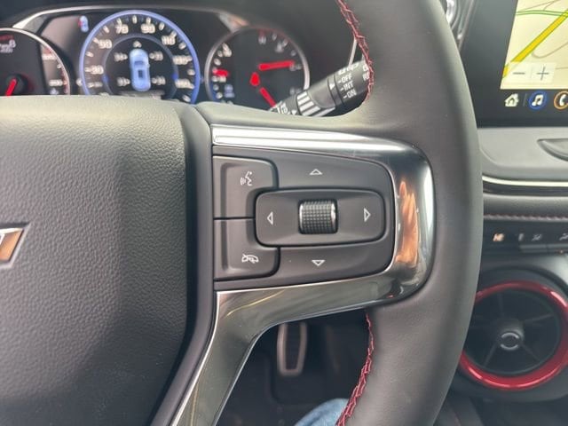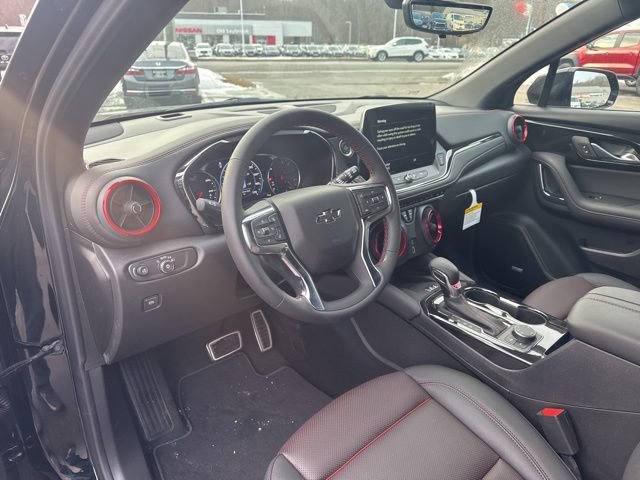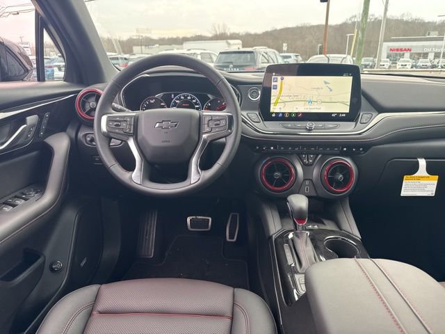 This Blazer RS is nicely equipped with Driver Confidence II Package (Adaptive Cruise Control, Enhanced Automatic Emergency Braking, HD Surround Vision, Rear Camera Mirror, Rear Camera Mirror Washer, and Safety Alert Seat), Enhanced Convenience Package (Heated Rear Outboard Seating Positions and Memory Settings), Sport Package (Pedal Cover Set), 3.47 Final Drive Ratio, 4-Wheel Disc Brakes, 6-Way Power Front Passenger Seat Adjuster, 8 Speakers, 8-Way Power Driver Seat Adjuster, ABS brakes, Air Conditioning, Alloy wheels, AM/FM radio: SiriusXM with 360L, Apple CarPlay/Android Auto, Auto High-beam Headlights, Auto-dimming door mirrors, Auto-dimming Rear-View mirror, Automatic temperature control, Bose Premium 8-Speaker Audio System Feature, Brake assist, Bumpers: body-color, Child-Seat-Sensing Airbag, Compass, Delay-off headlights, Driver door bin, Driver vanity mirror, Dual front impact airbags, Dual front side impact airbags, Electronic Stability Control, Emergency communication system: OnStar and Chevrolet connected services capable, Four wheel independent suspension, Front anti-roll bar, Front Bucket Seats, Front Center Armrest, Front dual zone A/C, Front reading lights, Fully automatic headlights, Garage door transmitter, Heated door mirrors, Heated front seats, Heated steering wheel, Illuminated entry, Knee airbag, Leather Shift Knob, Leather steering wheel, Low tire pressure warning, Navigation System, Occupant sensing airbag, Outside temperature display, Overhead airbag, Overhead console, Panic alarm, Passenger door bin, Passenger vanity mirror, Perforated Leather-Appointed Seat Trim, Power door mirrors, Power Driver Lumbar Control, Power driver seat, Power Liftgate, Power passenger seat, Power steering, Power windows, Premium audio system: Chevrolet Infotainment 3 Premium, Radio data system, Radio: Chevrolet Infotainment 3 Premium System, Rear anti-roll bar, Rear reading lights, Rear seat center armrest, Rear window defroster, Rear window wiper, Remote keyless entry, Security system, Speed control, Speed-sensing steering, Split folding rear seat, Spoiler, Steering wheel mounted audio controls, Stop-Start Engine Control System, Tachometer, Telescoping steering wheel, Tilt steering wheel, Traction control, Trip computer, Turn signal indicator mirrors, Variably intermittent wipers, Voltmeter, and Wireless Apple CarPlay/Wireless Android Auto.